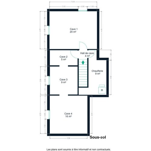 Grand sous-sol complet avec caves et chaufferie.