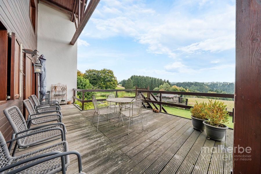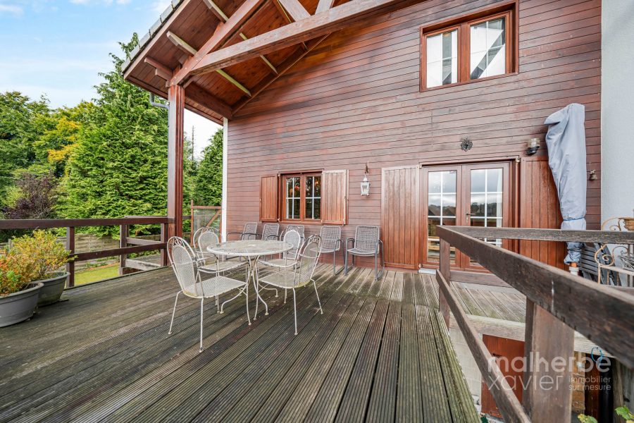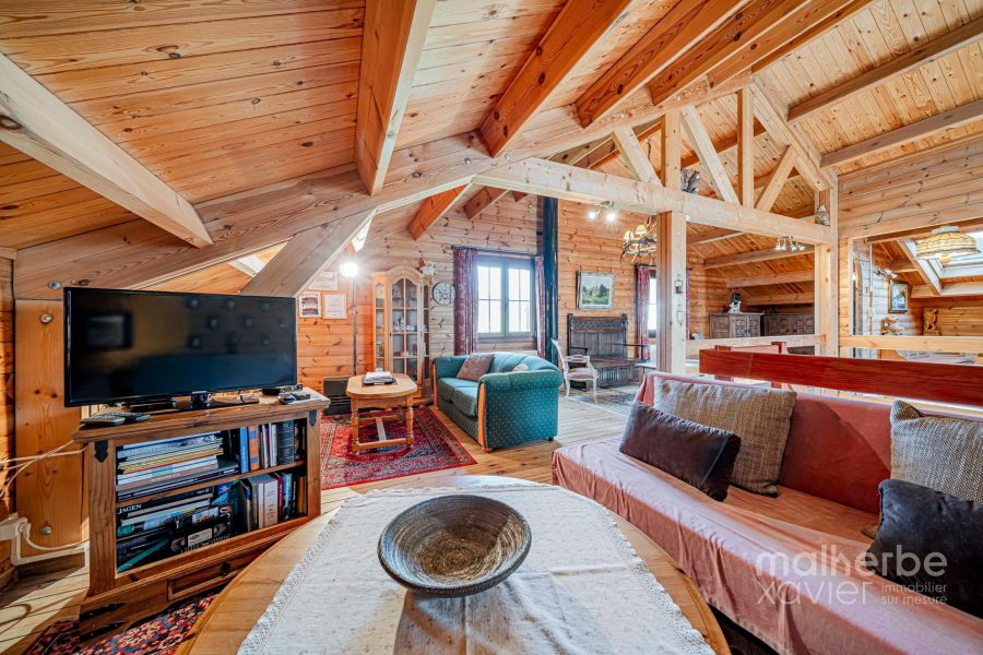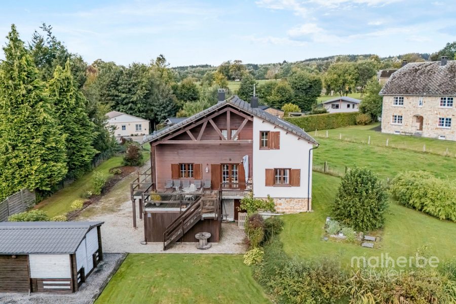 Implanté sur un terrain de 3.843 m², ce chalet quatre façades allie authenticité et espace. Son vaste jardin, ses terrasses et ses abords parfaitement entretenus invitent à la détente et à la contemplation.