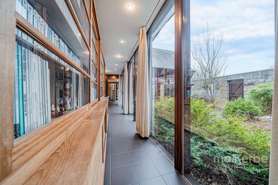 À l’abri des regards, ouverte sur le paysage, cette maison d’architecte unique, conçue par Daniel DETHIER, se distingue immédiatement par son écriture architecturale forte et intemporelle.