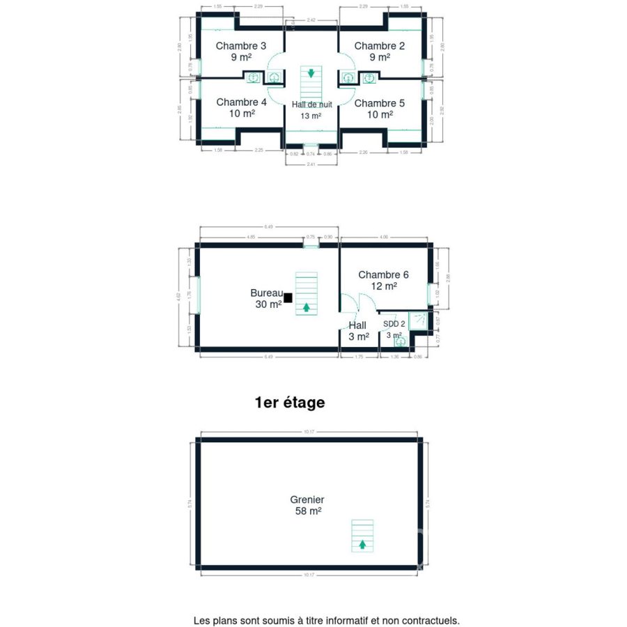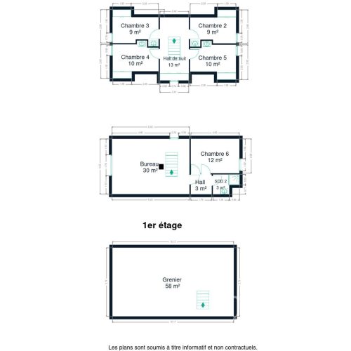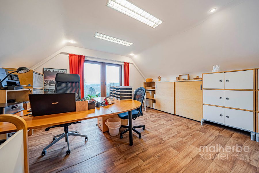 La maison propose 6 chambres, 3 salles d’eau, un bureau spacieux, de nombreux espaces de rangement ainsi qu’un grenier aménageable situé dans la partie avant de la maison, offrant une opportunité idéale pour l’installation d’un bureau pour profession libérale, cabinet ou activité indépendante, avec une séparation claire entre vie privée et activité professionnelle.