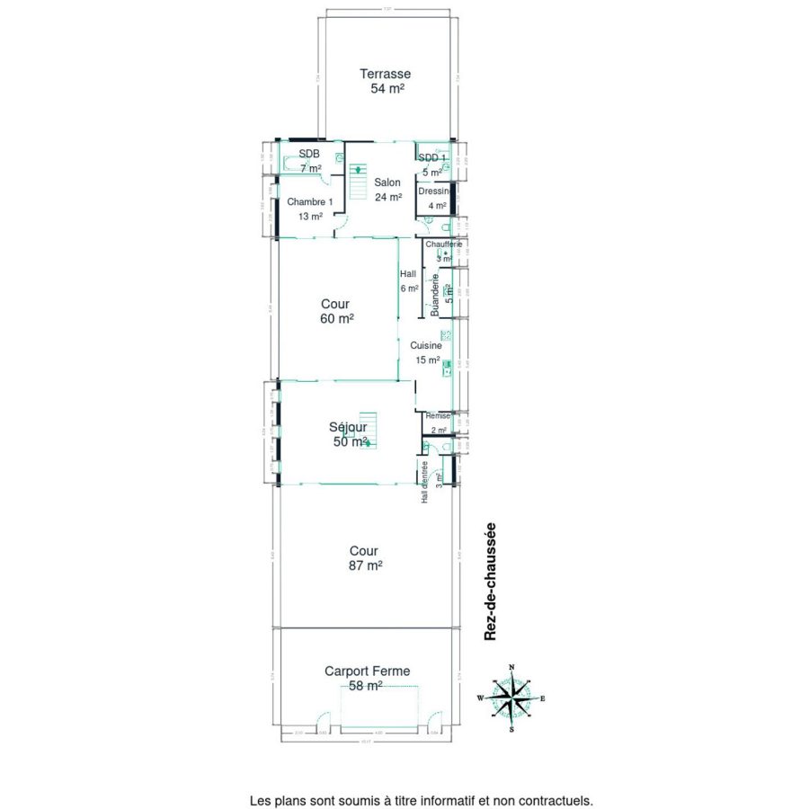 L’implantation, les volumes et les ouvertures répondent à une logique précise : lumière naturelle, intimité, perspectives maîtrisées.