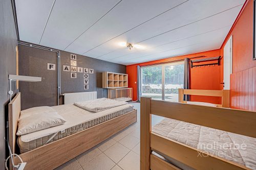 👉 14 chambres – 11 salles de bains – grands espaces communs – cuisine professionnelle – bar – salle à manger – sauna – jardin