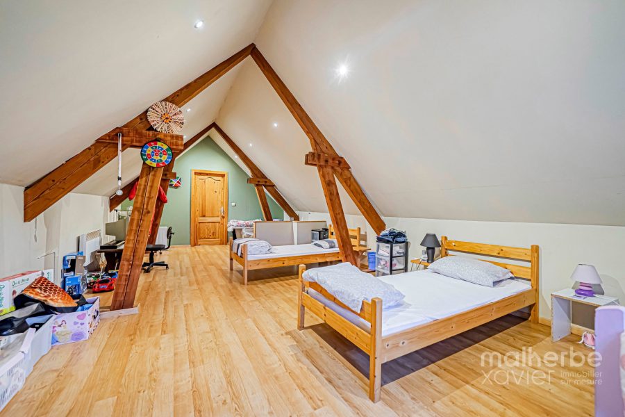 2 chambres supplémentaires, dont une très grande pièce sous toiture offrant de nombreuses possibilités d’aménagement.