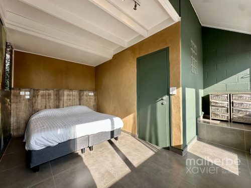 Finitions contemporaines (murs en argile, bois brut)