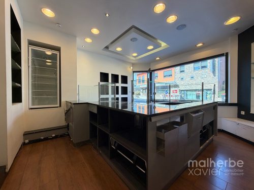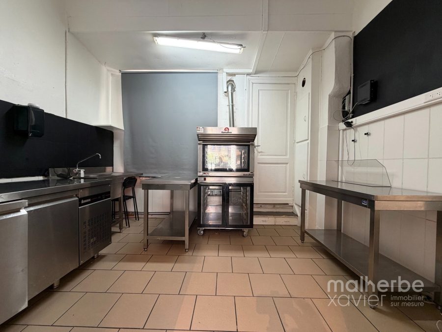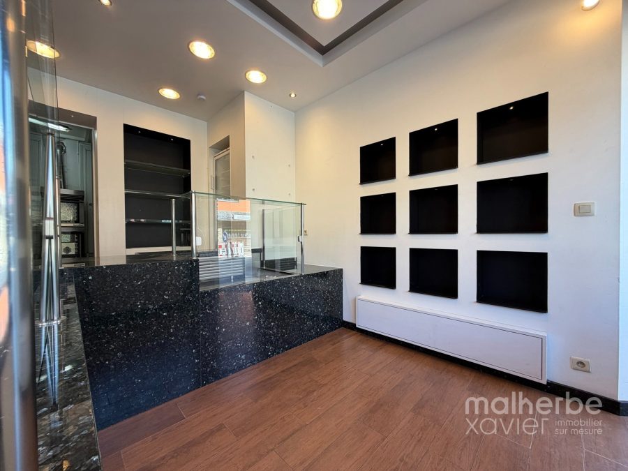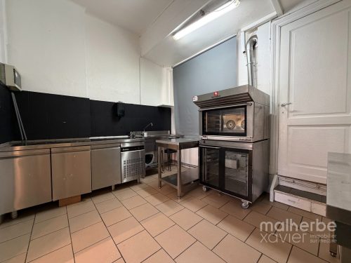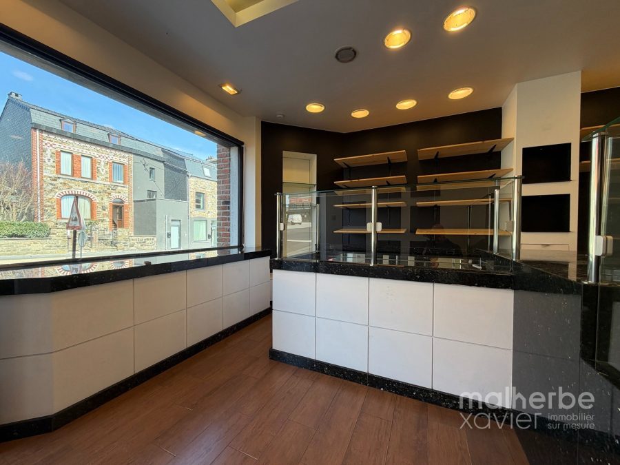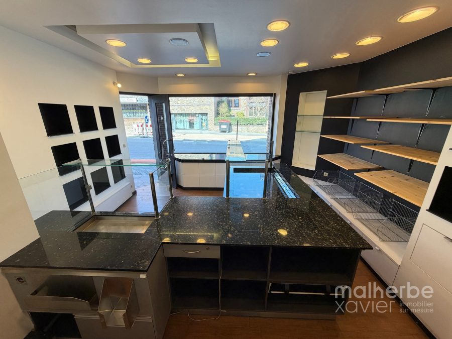 L’espace se compose d’un magasin lumineux avec comptoir et mobilier intégré, offrant une excellente visibilité grâce à une vitrine généreuse en façade, ainsi que d’un arrière fonctionnel structuré en espace cuisine et préparation.
