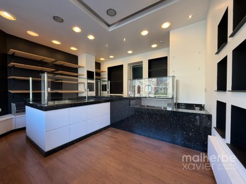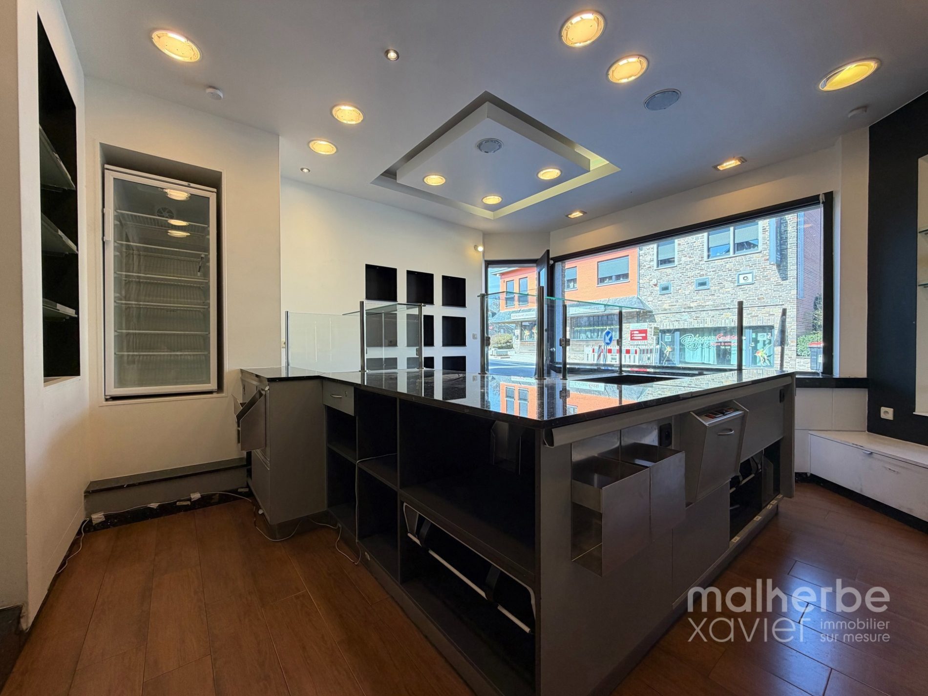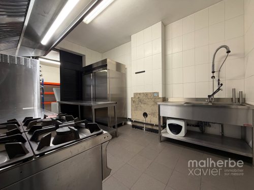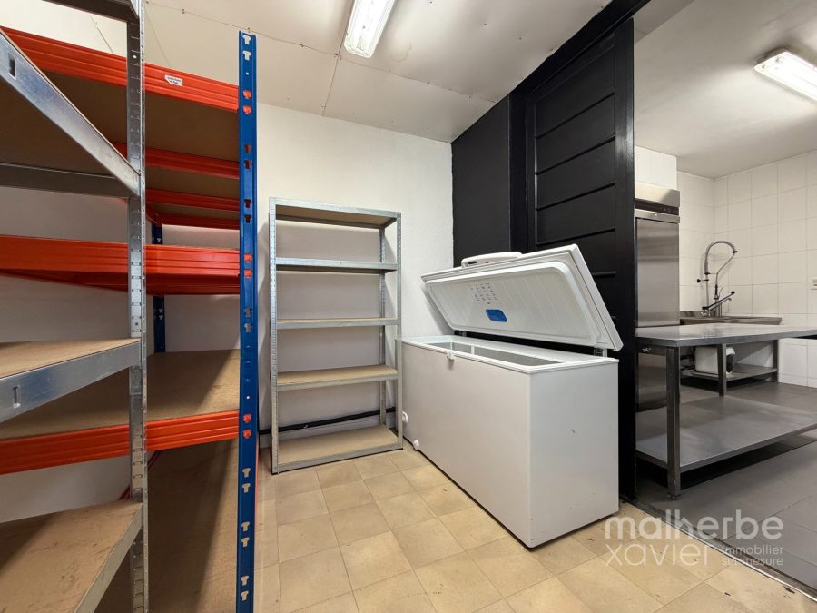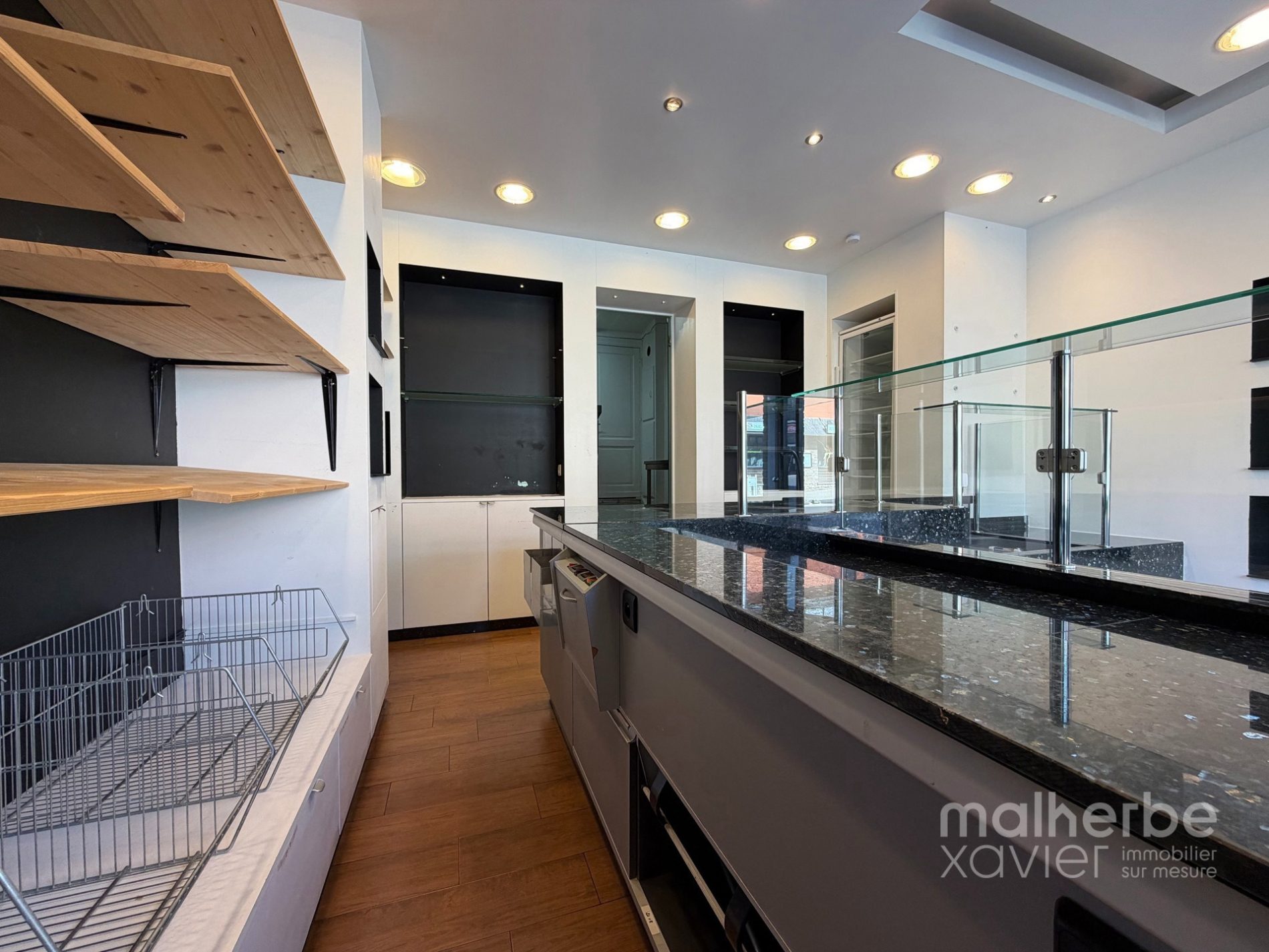 L’espace se compose d’un magasin lumineux avec comptoir et mobilier intégré, offrant une excellente visibilité grâce à une vitrine généreuse en façade, ainsi que d’un arrière fonctionnel structuré en espace cuisine et préparation.